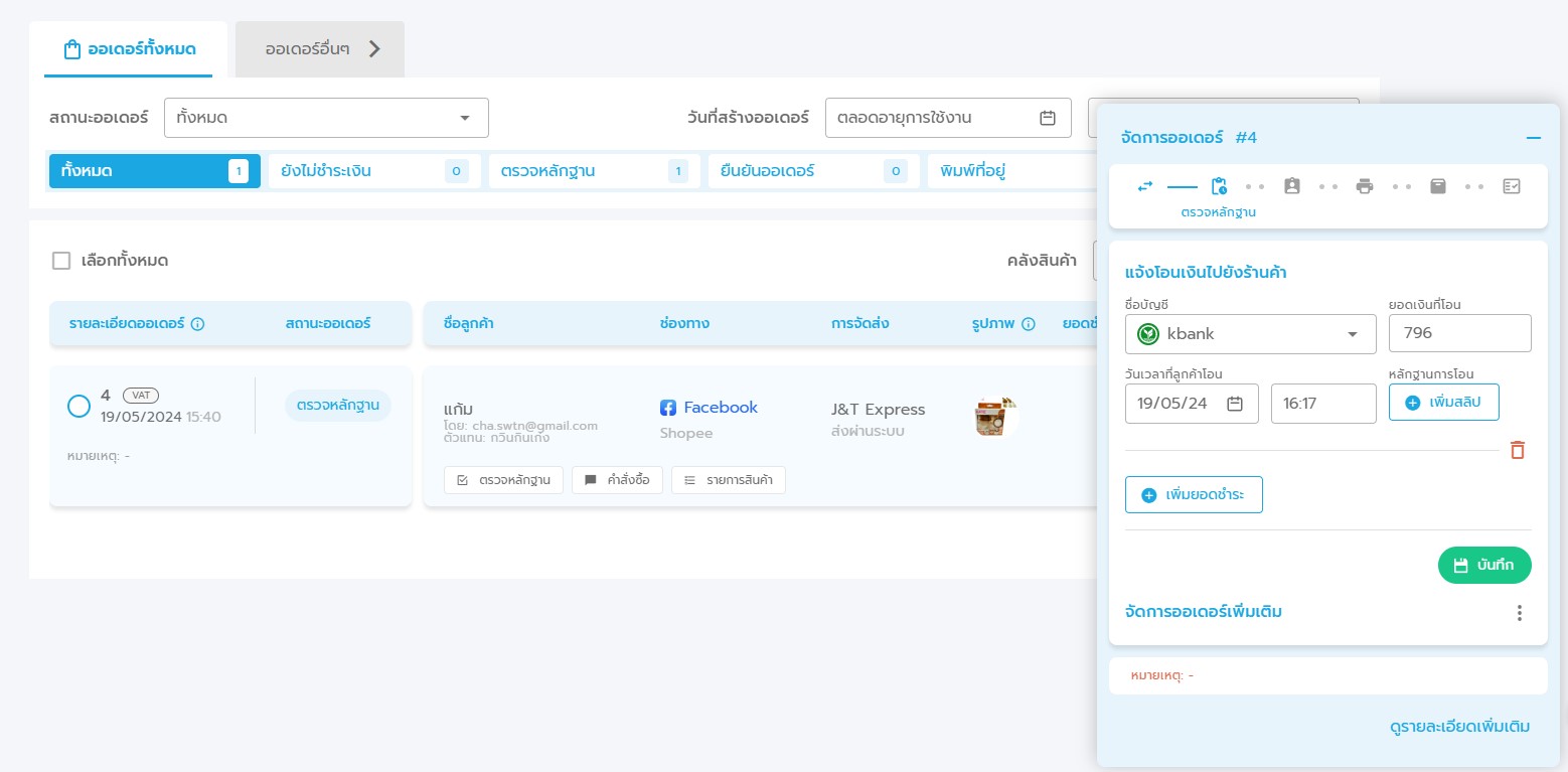ตัวอย่างการแจ้งยอดโอน สำหรับตัวแทนที่จำหน่ายผ่านช่องทางแพลตฟอร์มต่างๆ